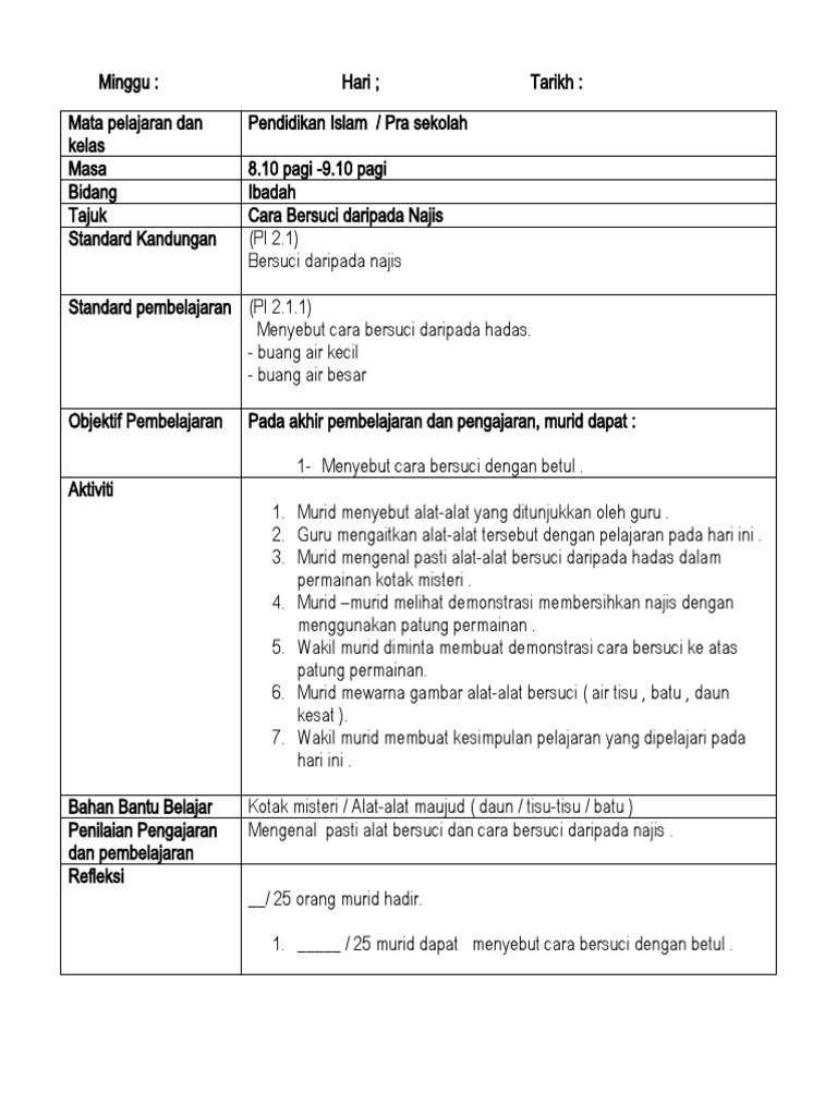Contoh Refleksi Pembelajaran. Contoh Rph Harian Doc Docx Rancangan Harian Prasekolah Minggu 17 Tarikh 9 5 2019 Hari Khamis Kehadiran Bidang Masa Perbualan Awal 8 00 8 20 Pg 20 Min Course Hero. Simpan Simpan CONTOH RPH prasekolah Untuk Nanti.