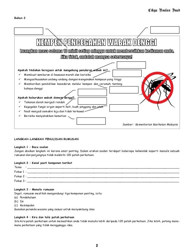 Daripada jumlah kes yang dilaporkan dari minggu. Huraikan punca punca yang menyebabkan merebaknya penyakit ini dan langkah-langkah bagi menanganinya. Penyakit demam denggi yang berpunca daripada nyamuk aedes merupakan ancaman yang membimbangkan negara.